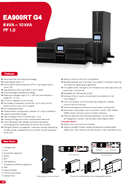 La UPS On Line de Doble Conversión de la serie EA900G4 RT de EAST (6KVA~10KVA), adopta los últimos avances en I +D y la experiencia en aplicaciones de alta fiabilidad. Con la avanzada tecnología de control digital DSP, mejora la fiabilidad y el rendimiento del sistema con eficacia, y alcanza un mayor nivel de densidad de potencia y miniaturización. Además de eso, es capaz de satisfacer las necesidades individualizadas de todos los clientes, con un amplio rango de potencias para esta Ups On Line. La Ups On Line de la serie EA900G4 ofrece energía altamente fiables. |